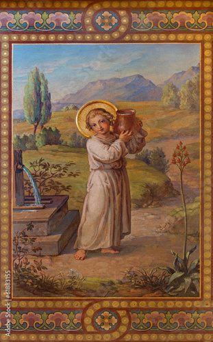 Fototapeta premium Vienna - Fresco of little Jesus as well of water of life
