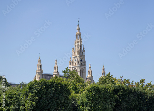 © Tatsiana, Fototapeta premium Vienna. View of Rathausplatz from the Volksgarten.