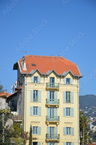 © pvhcreativ, Obraz premium Vier Balkone an gelbem Haus