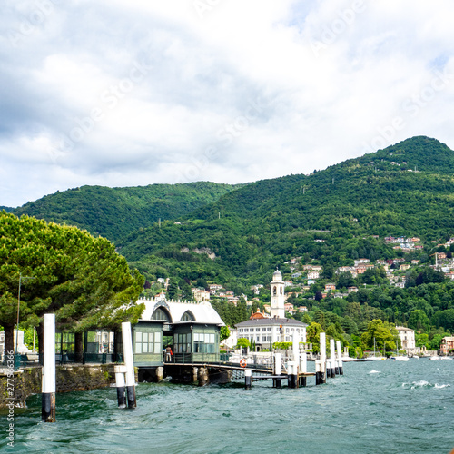 © Irina Lav, Naklejka premium View above big beautiful lake, Como lake, Italy. Summer cloudy view.