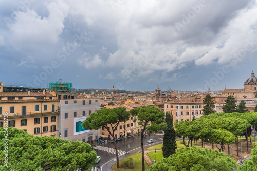 Fototapeta premium View above downtown of Rome, Italy. Beautiful city view beafore rain
