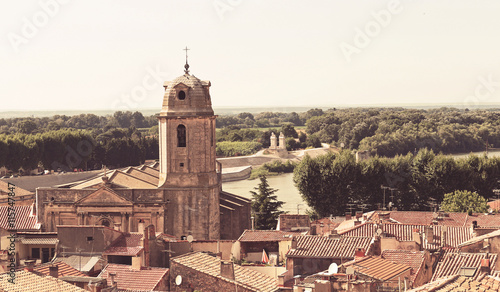 © Jonathan Stutz, Fototapeta premium view above old french town Arles and Rhône river in the back