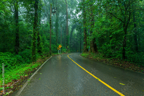 © yotrakbutda, Fototapeta premium View asphalt road in the rainforest