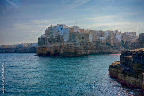 Naklejka premium View At Ancient City Hanging On The Cliffs of Polignano a Mare, Apulia, Italy