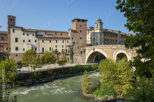 Fototapeta premium View at river Tevere and his island at Rome on Italy