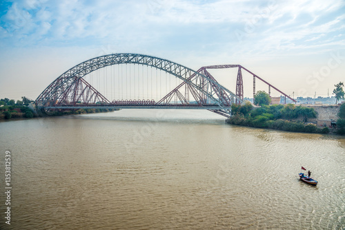© milosk50, Naklejka premium View at the Bridges over Indus river in Sukkur - Pakistan