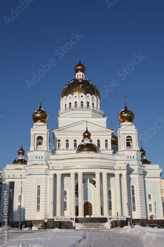 © Dmitry Erokhin, Fototapeta premium View at The Cathedral of St. Theodore Ushakov in Saransk, Russian during winter