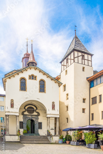 © milosk50, Fototapeta premium View at the Church of Sebastianskapelle in the streets of Brig town - Switzerland