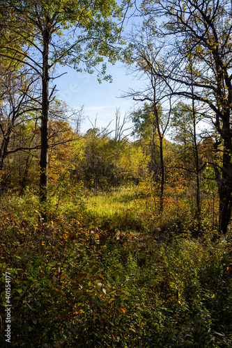 © Justin Mueller, Fototapeta premium view between trees during autumn in the forest