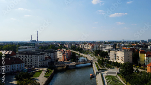 Fototapeta premium view city from the height of modern wish development architecture Europe Wroclaw Poland