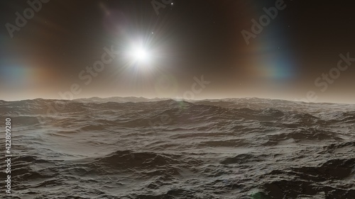 © ANDREI, Obraz premium view from a beautiful planet, beautiful space background 3d render