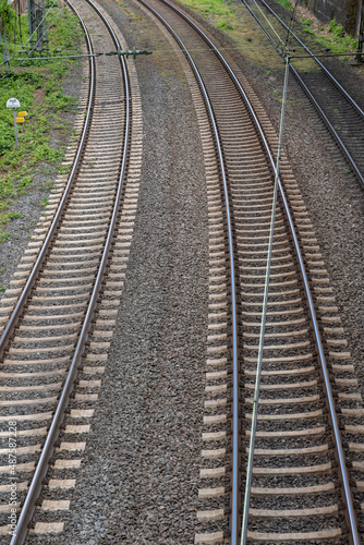 © fotografci, Fototapeta premium View from a bridge on two railway tracks near Mainz/Germany
