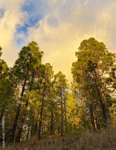 © svf74, Fototapeta premium View from a hiking trail through the pine forest above the La Quinta and Taucho villages at sunset in Tenerife,Canary Islands,Spain.