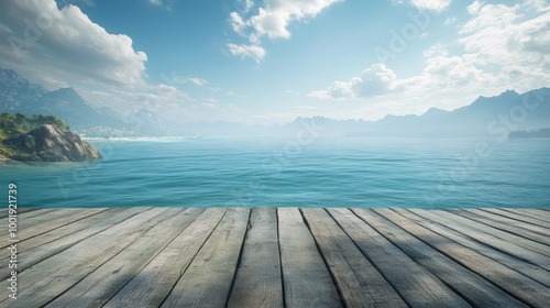 © S, Fototapeta premium View from a rustic wooden deck, facing the infinite ocean