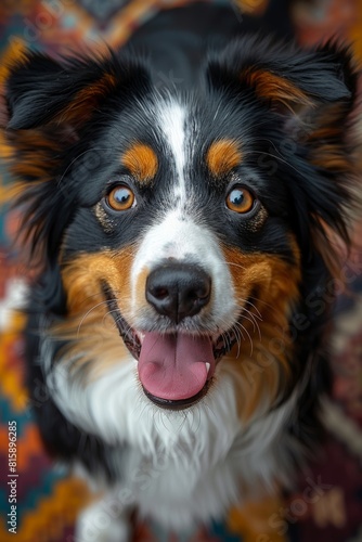 © marimalina, Fototapeta premium View from above of a happy mixed breed dog looking up at the camera. border collie