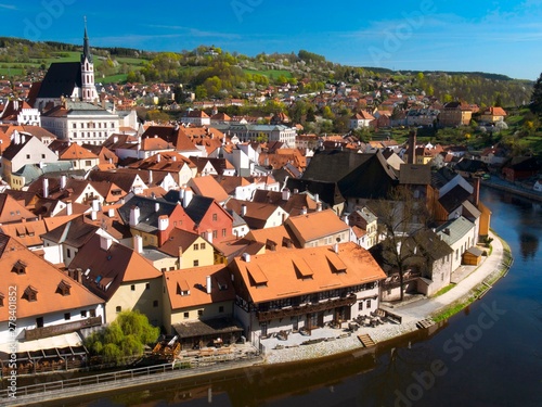 Fototapeta premium View from above of Cesky Krumlov town and Vltava River. The town is a UNESCO...