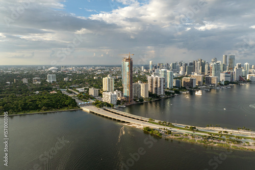 Fototapeta premium View from above of waterfront buildings in downtown district of Miami,...