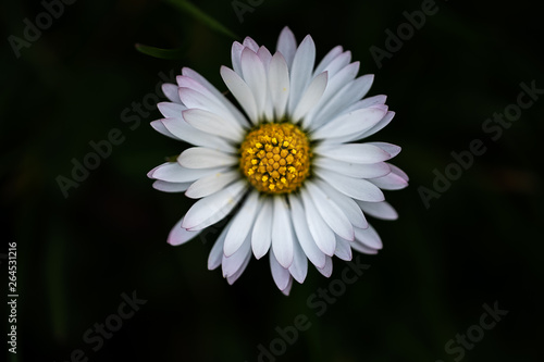 Fototapeta premium View from above on a white little daisy shallow depth of field isolated on dark background
