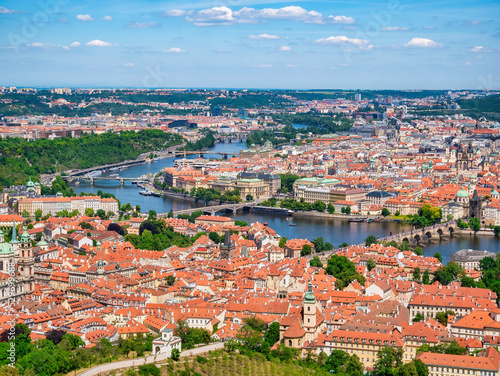 © Cristi, Obraz premium View from above with the famous Charles Bridge over Vltava river in Prague, Czech Republic