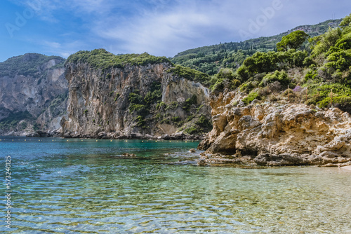 © Fotokon, Fototapeta premium View from Agios Petros beach in Palaiokastritsa village, Corfu Island, Greece