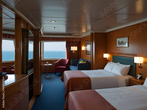 © Makise, Fototapeta premium View from Aurea Suite on MSC Sinfonia in the Port of Venice