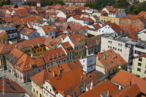 © kstipek, Obraz premium View from Cerna Vez (Black Tower) in Ceske Budejovice, South Bohemian, Czechia, Czech Republic, Europe, Central Europe
