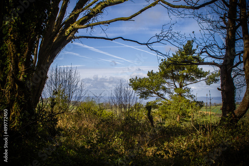 © Andrew Darkes, Obraz premium View from forest to a valley with blue sky.