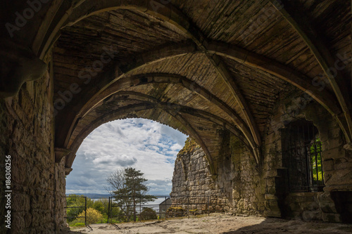 Naklejka premium View from inside the ruins of Culross Abbey over the Firth of Forth