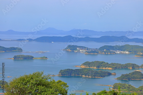© leochen66, Fototapeta premium View from Ishidake Observatory deck, a lookout point with views of Kujukushima (Kujuku Islands in Funakoshicho, Sasebo, Nagasaki, Japan