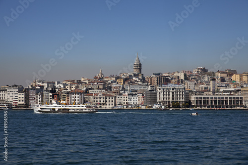 Fototapeta premium View from Istanbul with Galata Tower and the ferry
