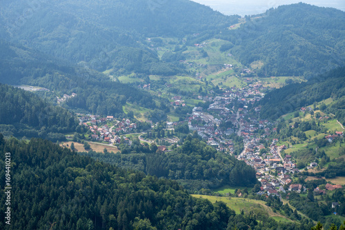 © T.Schwarz, Fototapeta premium View from Karlsruher Grat overlooking a village in the valley