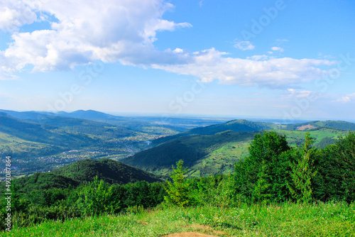 Fototapeta premium View from Mount Makovitsa in Western Ukraine. Landscape on mountains and...