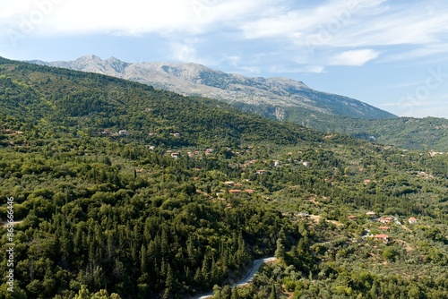 Naklejka premium View from Mystras Castle on the Taygetos mountain range. Peloponnese. Greece.