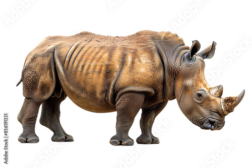 © Alghas, Obraz premium View from side of rhinoceros isolated on white background, transparent background
