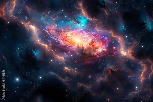 © Koihime, Fototapeta premium View from space to a spiral galaxy and stars. Universe filled with stars