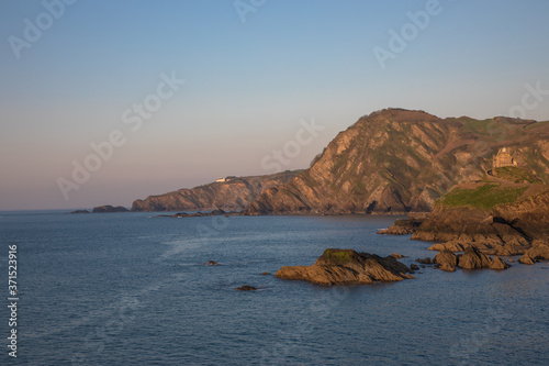 Fototapeta premium View from the Capstone Hill towards Beacon Point at sunset, Ilfracombe, Devon, UK