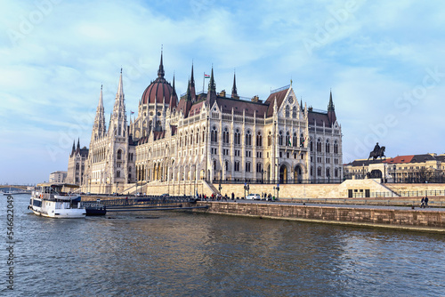 Fototapeta premium View from the Danube River to the Gothic building of the Hungarian Parliament...