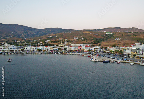© jekatarinka, Fototapeta premium View from the ferry before evening of Tinos, Cyclades