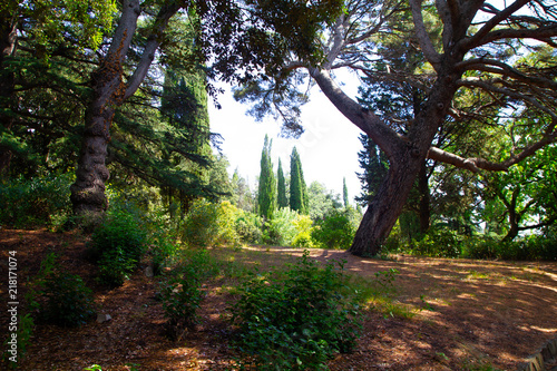 Fototapeta premium View from the forest to the cypresses