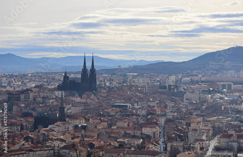© Andrei Antipov, Naklejka premium View from the hill to the city of Clermont-Ferrand, located in the center of France