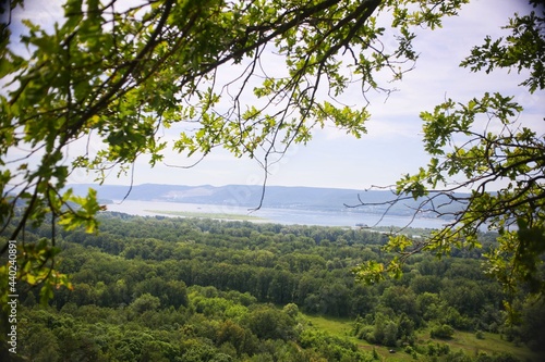 Obraz premium View from the hill to the mountains and the river