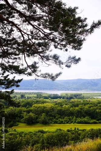 Obraz premium View from the hill to the mountains and the river