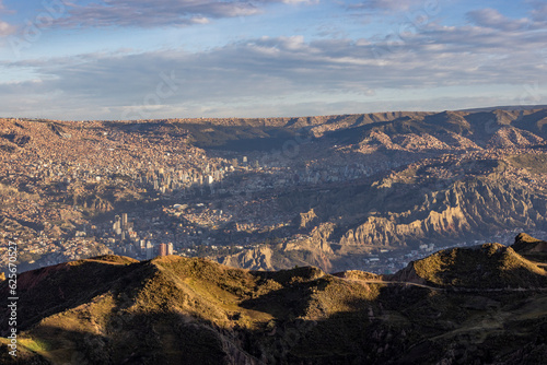 © freedom_wanted, Fototapeta premium View from the landmark Muela del Diablo over the highest administrative capital, the vibrant city La Paz in Bolivia - traveling and exploring South America