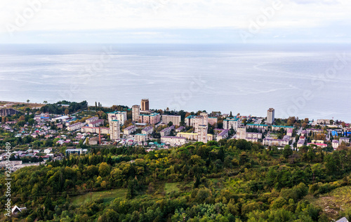 Fototapeta premium View from the mountains to the city in Abkhazia