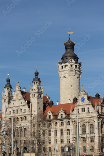 Fototapeta premium View from the new city hall Leipzig, Germany, with blue sky