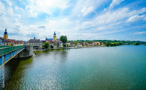 Naklejka premium View from the Old Main Bridge of the Main and the city of Kitzingen. Medieval...