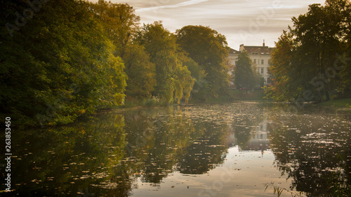 © vasile, Fototapeta premium view from the park of Bremen Germany, autumn with brightly colored leaves, and reflection of water
