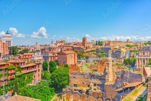 Fototapeta premium View from the Roman Forum and Palatine Hill(Collina del Palatino ) on top of Rome.