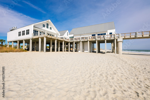 Naklejka premium View from the sandy beach of the Grand Strand along the Atlantic Ocean of the...