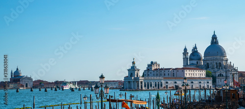 © eskstock, Obraz premium View from the square San Marco to the grand canal in Venice, Italy. Architecture and landmark of Venice. Vacation and holidays in Italy and Europe concept.